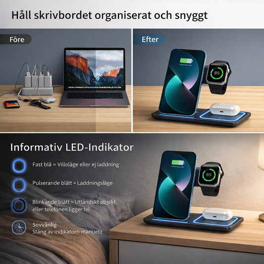 Smart 3-i-1 Magnetisk Laddstation – Vikbar & Trådlös